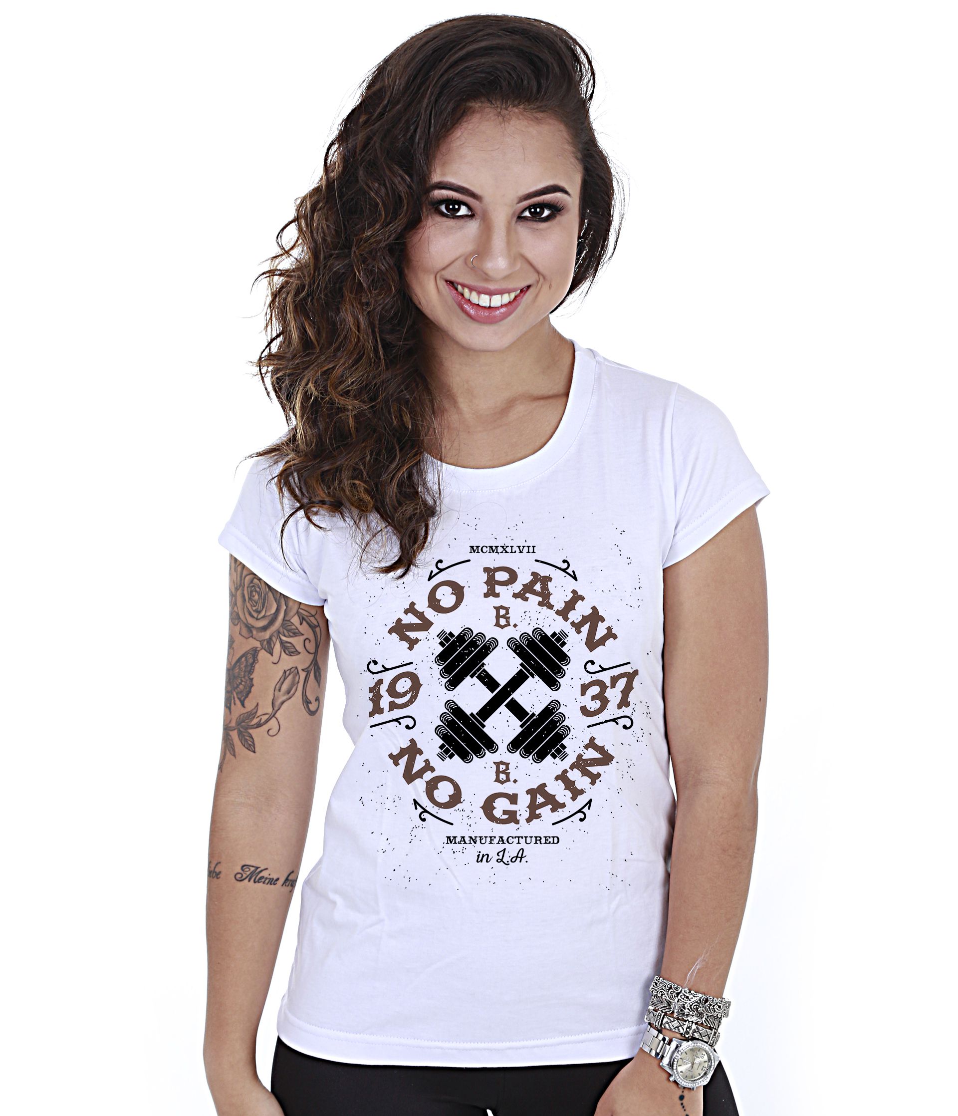 Camiseta Academia No Pain No Gain Feminina Baby Look